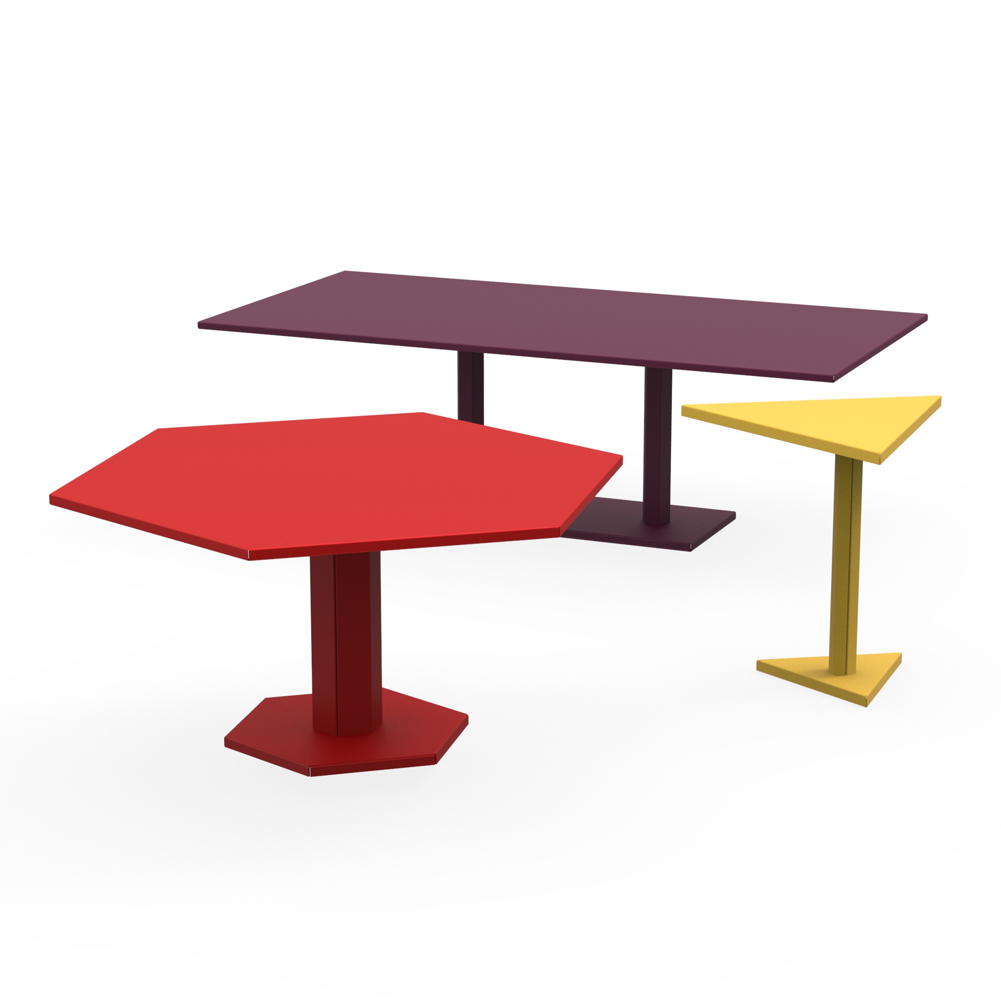 La collection HEXAGONE présente des tables en métal anticonformiste et pluri optionnelle. Les plateaux ou les piètements de ces meubles forment de parfaits hexagones, rappelant ainsi l’origine française inhérente à la marque.