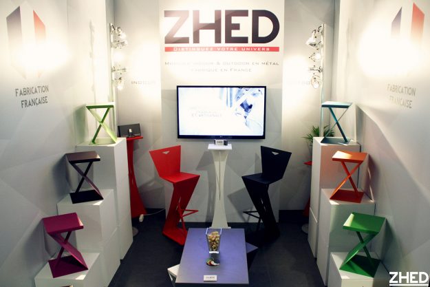 Edith Bricogne et Alain Gislot, professeurs de design dans une école parisienne et représentants de l’association ARCADE, ont séléctionné ZHED pour leur vingtième exposition intitulée « Une histoire de plus ou de moins » au château de Sainte Colombe-en-Auxois. Avec une table de nuit NOX couleur sable et une table basse SPIRIX gris Koala accompagnée de ses