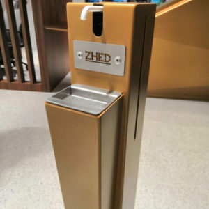 275,00€ TTCZHED a développé pour vous un distributeur de gel hydroalcoolique élégant, design et fabriqué en France. Une pédale en acier inoxydable intégrée permet d’une simple pression du pied de distribuer la dose parfaite de gel. Cette borne de gel est compatible avec la plupart des bouteilles de gel hydroalcoolique du marché puisque son support arrière est réglable en hauteur.