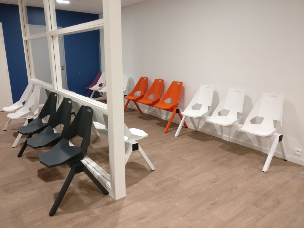 L’équipe ZHED a revisité la conception de sa chaise Plexus, dessinnée par le designer Mathieu Léote, afin de l’adapter à une salle d’attente médical.