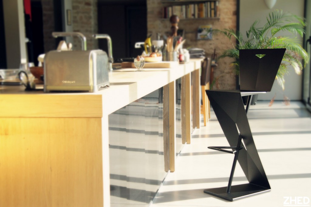 Le mobilier ZHED est conçu et fabriqué en Bourgogne, de manière artisanale. Des aspects irréguliers dus à la matière elle-même ou au travail de transformation manuel du métal comme le pliage ou la soudure pouvant apparaître ne constituent pas un défaut.