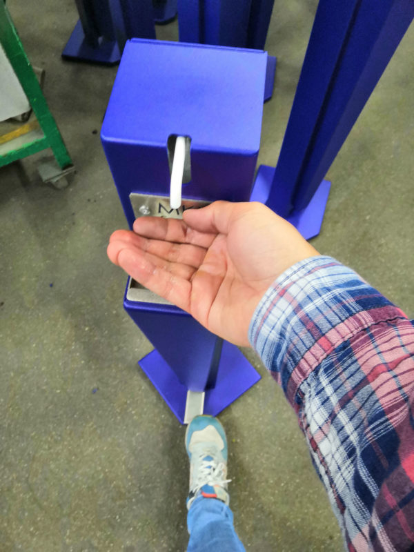 Chacune des bornes de Gel Hydroalcoolique ZHED intègre un réservoir en inox pour garantir un usage propre. Ce bac est amovible pour faciliter son nettoyage